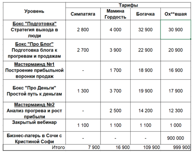 *в стоимость отдельных услуг (Бокс, мастермайнд, закрытый вебинар) входят услуги по предоставлению обратной связи и проверке домашних заданий от кураторов курса и/или от автора курса в соответствии с выбранным тарифом